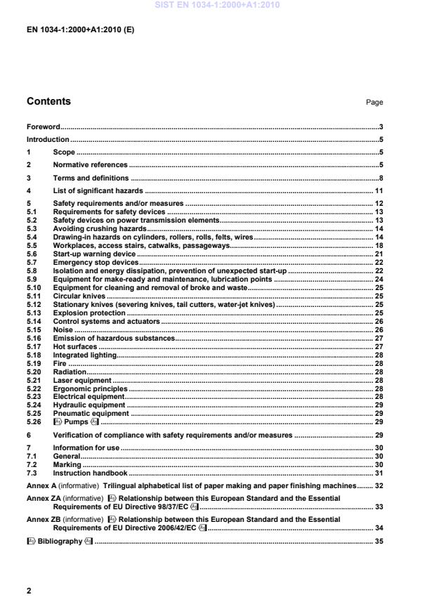 !Relationship between this European Standard and the Essential Requirements of EU Directive 2006/42/EC" . 34!Bibliography" . 35 SIST EN 1034-1:2000+A1:2010