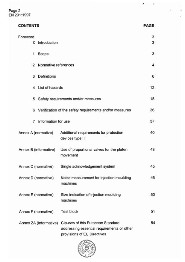 EN 201:2009 - Plastics and rubber machines - Injection moulding machines - Safety requirements - Effective Date