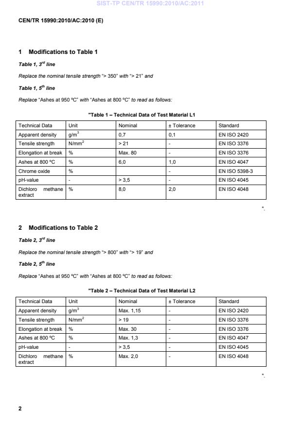 CEN/TR 15990:2010/AC:2010 is a corrigendum published by the European Committee for Standardization (CEN). Its full title is "Data Sheets - Footwear Tests Materials and Test Adhesives". This standard covers: TC - Correction of values in Tables 1, 2 and 3 (data sheets) - Chemistry