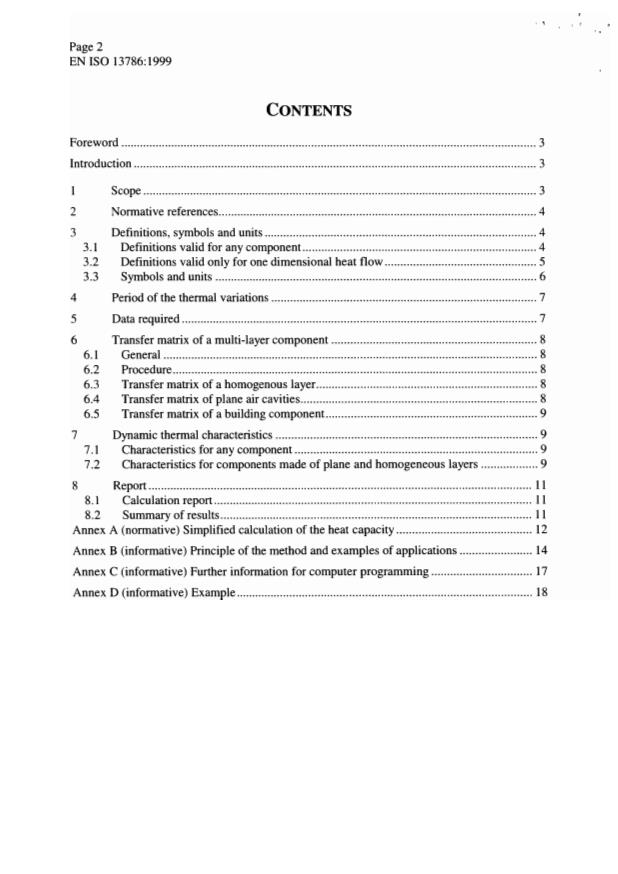 This Standard definies the characteristics related to dynamic thermal behaviour of complete building components and gives method for their calculation. It also specifies the information on building materials required for its use. Since the characteristics depend on the way materials are combined to form building elements, the standard is not applicable to building materials, or to unfinished building components.