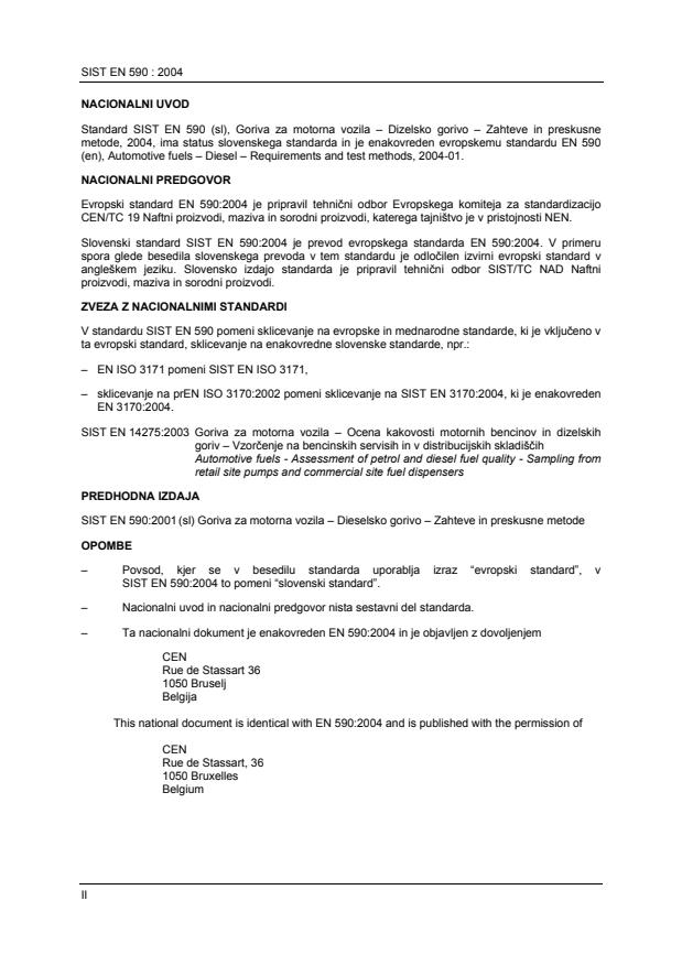 Slovenski standard SIST EN 590:2004 je prevod evropskega standarda EN 590:2004. V primeru