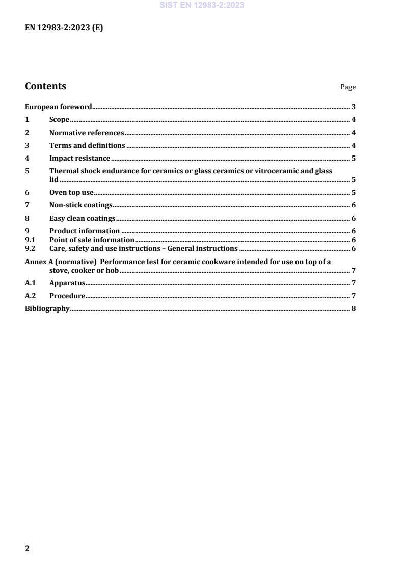 EN 12983-2:2023 is a standard published by the European Committee for Standardization (CEN). Its full title is "Cookware - Domestic cookware for use on top of a stove, cooker or hob - Part 2: General requirements for ceramic cookware and glass lid". This standard covers: This document specifies safety and performance requirements of domestic ceramic and glass ceramic cookware for use on top of a stove, cooker or hob. This document envisages that oven top applications for ceramic utensils involve all or specific parts of the cooking operation, for example, the browning of meat, where the remainder of the cooking can be completed in an oven or on top of the stove. NOTE Requirements for suitability for use with induction hobs are in the process of being compiled.