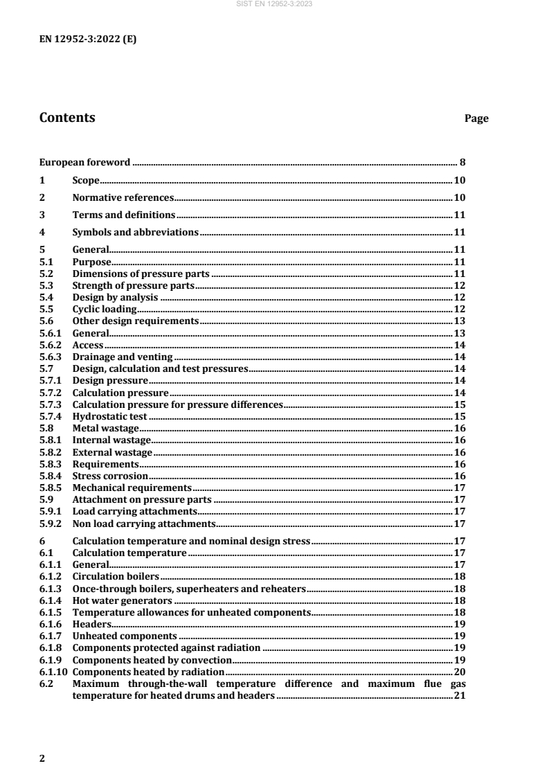 기사 제목: EN 12952-3:2022 - 수관식 보일러 및 보조 설비 - 제3부: 보일러의 압력부품에 대한 설계와 계산 기사 내용: 본 문서는 EN 12952-1에서 정의된 수관식 보일러의 설계와 계산에 대한 요구사항을 명시한다. 이 문서의 목적은 EN 12952의 이 부분에 따른 설계의 적절한 적용을 통해 수관식 보일러와 관련된 위험을 최소화하는 것이다.