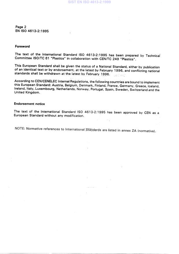 EN ISO 4613-2:1995 is classified under the following ICS (International Classification for Standards) categories: 83.080 - Plastics. The ICS classification helps identify the subject area and facilitates finding related standards.