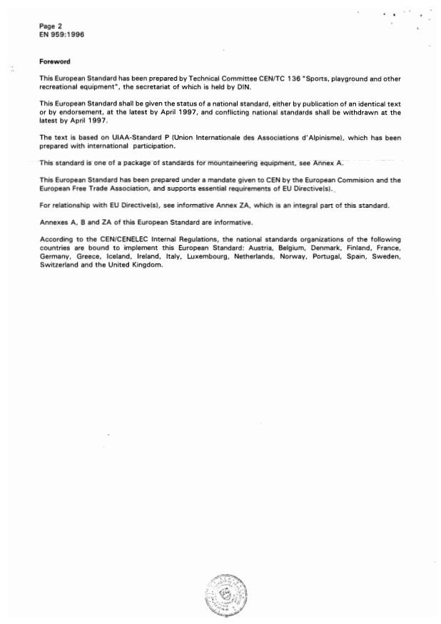 EN 959:2007 - Mountaineering equipment - Rock anchors - Safety requirements and test methods - Effective Date