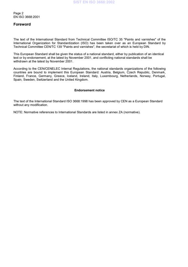 EN ISO 3668:2001 is classified under the following ICS (International Classification for Standards) categories: 87.040 - Paints and varnishes. The ICS classification helps identify the subject area and facilitates finding related standards.