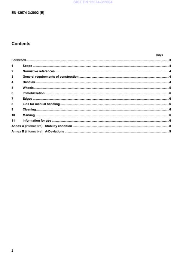 EN 12574-3:2002 is a standard published by the European Committee for Standardization (CEN). Its full title is "Stationary waste containers - Part 3: Safety and health requirements". This standard covers: This part of the European Standard specifies essential safety and health requirements for stationary waste con-tainers, not including special containers for hazardous waste.