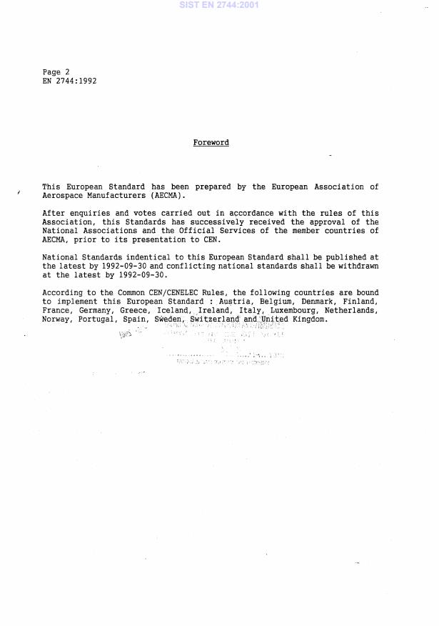 Keywords: EN 2744:1992, preferred test temperatures, non‑metallic materials, aerospace, rubber and plastics, material testing, test temperature selection, conditioning, quality assurance.