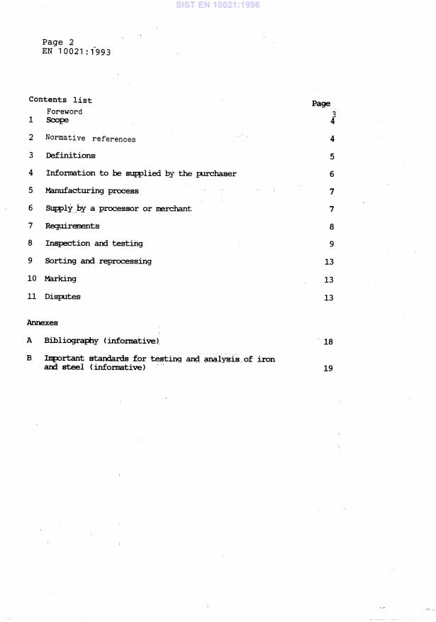 EN 10021:1993 is a standard published by the European Committee for Standardization (CEN). Its full title is "General technical delivery requirements for steel and iron products". This standard covers: This European Standard specifies the general technical delivery requirements for all steel products covered by EN 10079 with the exception of steel castings and powder metallurgical products (see annex A). En 10204 describes the inspection documents to be used. Where the delivery requirements agreed for the order or specified in the appropriate product or material standard differ from the general technical delivery requirements defined in this standard, then it is the requirements agreed for the order or specified in the appropriate product or material standard which shall apply.