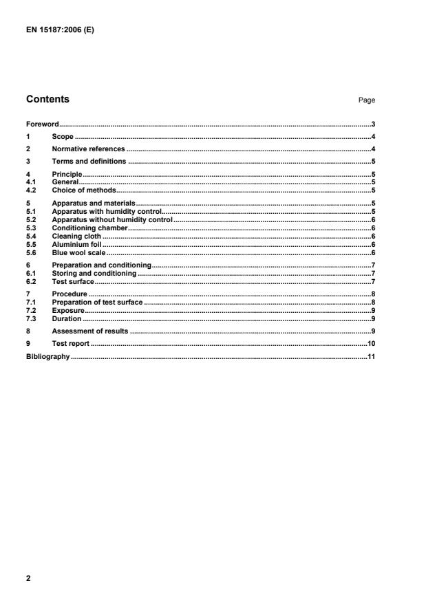 EN 15187:2006 is a standard published by the European Committee for Standardization (CEN). Its full title is "Furniture - Assessment of the effect of light exposure". This standard covers: This European standard specifies a method for the assessment of the effects of light in indoor conditions, by exposure to artificial radiation and applies to rigid surfaces of all finished products regardless of material. It does not apply to finishes on leather and fabrics. The test is intended to be carried out on a part of the finished furniture, but can be carried out on test panels of the same material, finished in an identical manner to the finished product, and of a size sufficient to meet the requirements of the test. The test should be carried out on unused surfaces. This standard describes the most important parameters, such as the colour change when a surface is exposed and specifies the conditions to be used in the exposure apparatus. The light resistance of a surface can be assessed by using two apparatus as specified in clause 4, one as a reference test method, and the other for in-company testing.