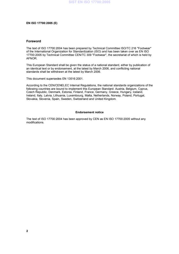 17700:2005 by Technical Committee CEN/TC 309 "Footwear", the secretariat of which is held by
