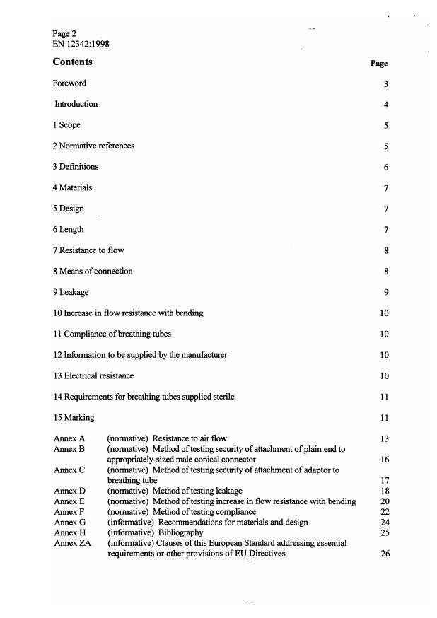 EN 12342:1998 is a standard published by the European Committee for Standardization (CEN). Its full title is "Breathing tubes intended for use with anaesthetic apparatus and ventilators". This standard covers: This European Standard specifies the basic requirements for breathing tubes and breathing tubing supplied to be cut to length, intended for use with anaesthetic apparatus and ventilators, humidifiers and nebulizers. It also applies to breathing tubes and Y-pieces supplied already assembled and to those supplied as components and assembled in accordance with the manufacturers' instructions. Provision is made for breathing tubes having ends incorporating adaptors with conical connectors (assembled ends) or with plain ends (either cylindrical or tapered). Breathing tubes for special purposes, such as those used with ventilators having special compliance requirements and coaxial lumen tubes, are outside the scope of this European Standard. Unless specified otherwise, the requirements of this European Standard apply equally to breathing tubes intended by the manufacturer for single use and those intended for re-use.
