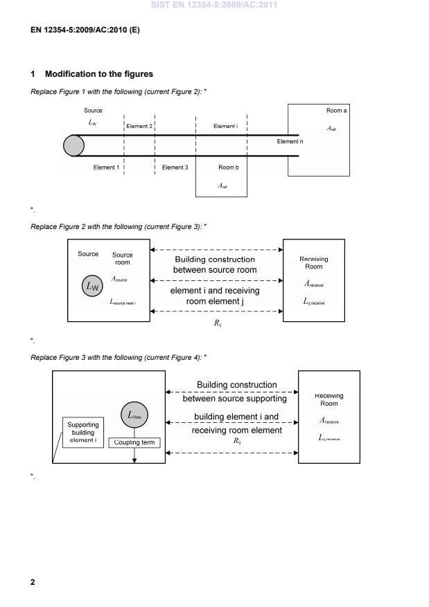 EN 12354-5:2009/AC:2010 is a corrigendum published by the European Committee for Standardization (CEN). Its full title is "Building acoustics - Estimation of acoustic performance of building from the performance of elements - Part 5: Sounds levels due to the service equipment". This standard covers: CCMC - wrong figures linked into the CA/7 document (Figures 1 to 4); the FV version has been correct - Building and civil engineering