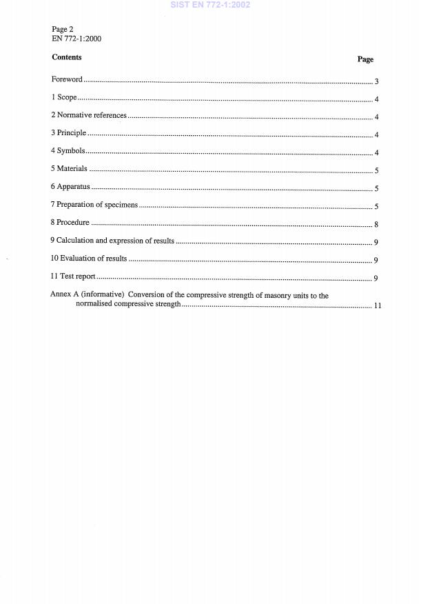 EN 772-1:2000 is a standard published by the European Committee for Standardization (CEN). Its full title is "Methods of test for masonry units - Part 1: Determination of compressive strength". This standard covers: This European standard specifies a method for determining the compressive strength of masonry units.