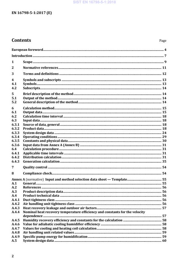 Input and method selection data sheet — Template . 55 A.1 General . 55 A.2 References . 56 A.3 Product description data . 56 A.4 Product technical data . 56 A.4.1 Duct tightness class . 56 A.4.2 Air handling unit tightness class . 56 A.4.3 Heat recovery leakage and outdoor air factors . 57 A.4.4 Nominal heat recovery temperature efficiency and constants for the velocity dependence . 57 A.4.5 Humidity recovery efficiency and constants for the calculation . 58 A.4.6 Value for adiabatic cooling humidifier efficiency . 58 A.4.7 Values for cooling and heating coil calculation . 58 A.4.8 Air handling unit related values . 59 A.4.9 Specific pump energy for humidification . 59 A.5 System design data . 60 SIST EN 16798-5-1:2018