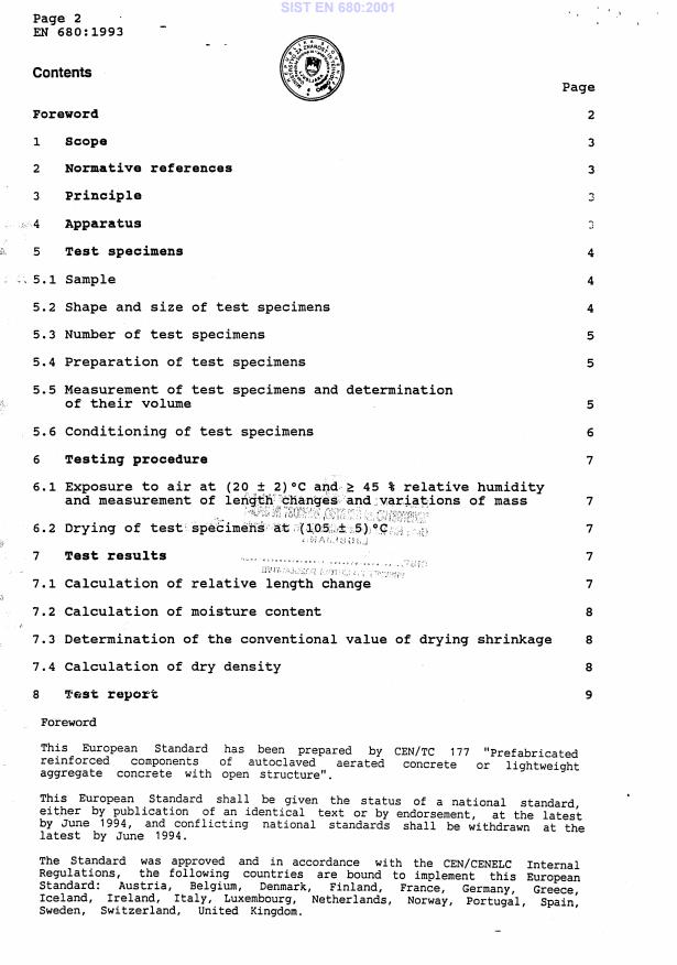 EN 680:1993 is a standard published by the European Committee for Standardization (CEN). Its full title is "Determination of the drying shrinkage of autoclaved aerated concrete". This standard covers: This European Standard specifies the procedure for the determination of the relative deformation during drying (drying shrinkage) of autoclaved aerated concrete.