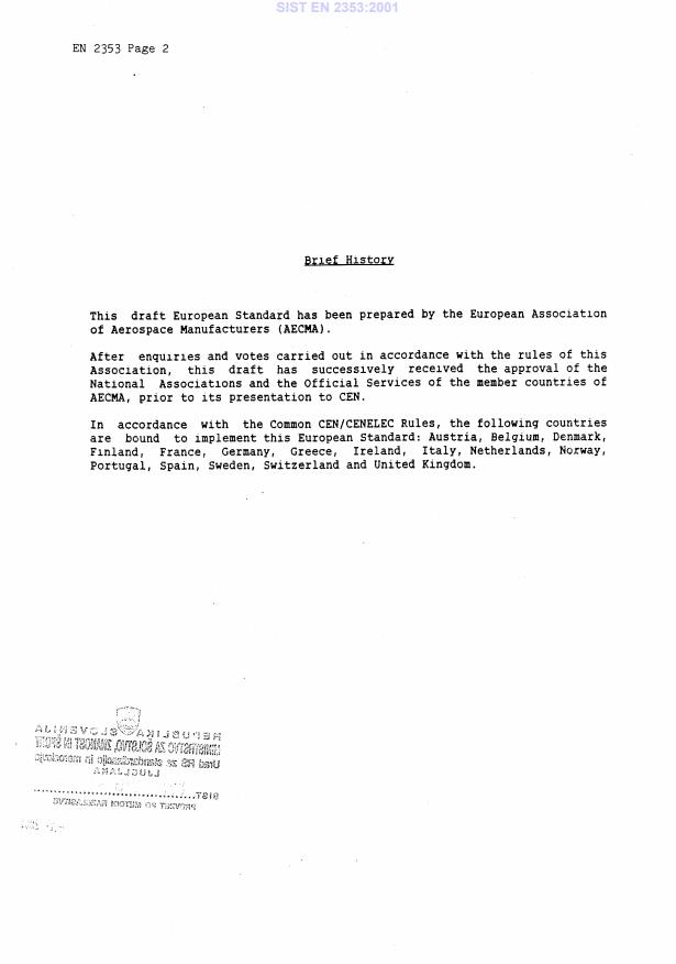 EN 2353:1988 is a standard published by the European Committee for Standardization (CEN). Its full title is "Aerospace series - Turnbarrels, control cable in corrosion resisting steel - Dimensions and loads". This standard covers: This standard specifies the characteristics of turnbarrels in corrosion resisting steel intended for aircraft control cables.
