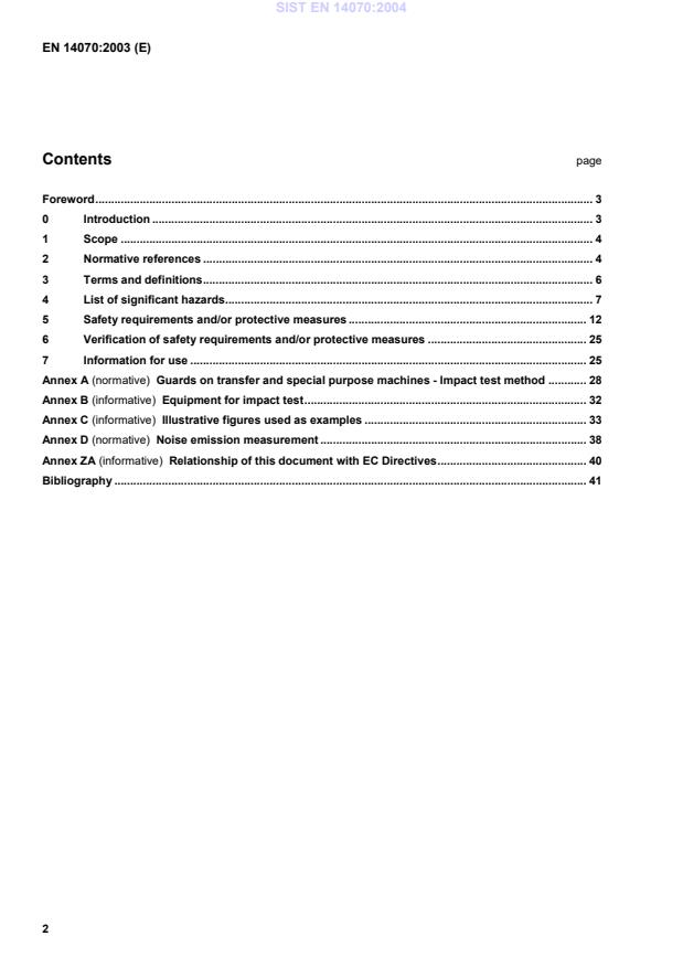 EN 14070:2003 is a standard published by the European Committee for Standardization (CEN). Its full title is "Safety of machine tools - Transfer and special purpose machines". This standard covers: 1.1 This standard specifies the technical safety requirements and protective measures to be adopted by persons undertaking the design, construction and supply (including installation and dismantling, with arrangements for transport and maintenance) of transfer and special purpose machines (see 3.1). These machines are designed to process only a prespecified workpiece or limited family of workpieces by means of a predetermined sequence of machining operations and process parameters. 1.2 This standard takes account of intended use, including reasonably foreseeable misuse, maintenance, cleaning, and setting operations. It specifies access arrangements to machining positions and manual load/unload stations (see 3.4). It presumes access to the machine from all directions. It describes means to reduce risks to operators and other exposed persons. 1.3 This standard also applies to transport devices for workpiece load/unload when they form an integral part of the machine. 1.4 This standard deals with significant hazards relevant to transfer and special purpose machines when they are used as intended and under the conditions foreseen by the manufacturer (see clause 4). 1.5 Where machines employ processes which are covered by other standards (e.g. grinding, turning, forming, EDM, laser processing) this standard does not reiterate the requirements of those standards (see annex E - Bibliography). 1.6 This standard applies to machines which are manufactured after (date of approval by CEN).