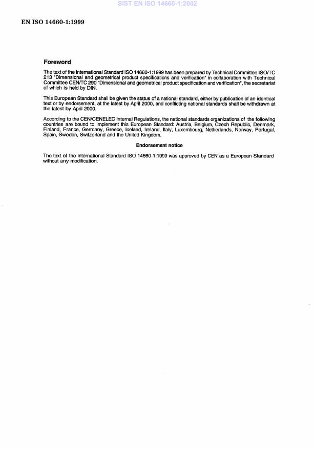 EN ISO 14660-1:1999 is a standard published by the European Committee for Standardization (CEN). Its full title is "Geometrical Product Specifications (GPS) - Geometrical features - Part 1: General terms and definitions (ISO 14660-1:1999)". This standard covers: Migrated from Progress Sheet (TC Comment) (2000-07-10): Waiting for ISO document