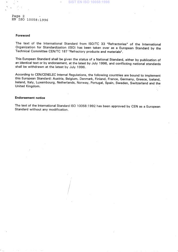 EN ISO 10058:1996 is classified under the following ICS (International Classification for Standards) categories: 73.080 - Non-metalliferous minerals. The ICS classification helps identify the subject area and facilitates finding related standards.