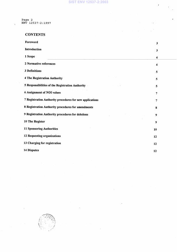 ENV 12537-2:1997 is a standardization document published by the European Committee for Standardization (CEN). Its full title is "Medical informatics - Registration of information objects used for EDI in healthcare - Part 2: Procedures for the registration of information objects used for electronic data interchange (EDI) in healthcare". This standard covers: This European Prestandard specifies a procedure for the registration of infor- mation objects used in electronic data interchange messages (EDI) for the purpose of information interchange related to healthcare. The naming and definition of the information objects is covered in Part 1 of this European Prestandard. This European Prestandard does not specify the file organisation techniques, storage media, programming languages, etc., to be used in its implementation.