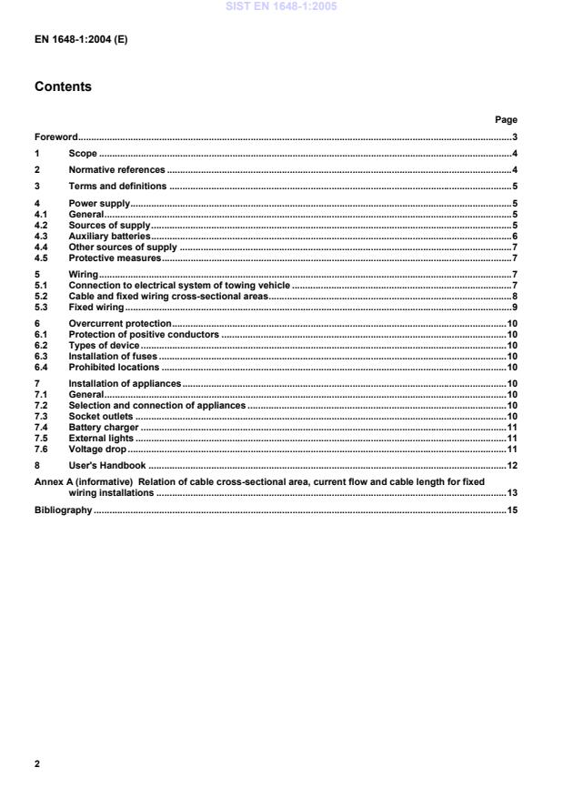 EN 1648-1:2004 is a standard published by the European Committee for Standardization (CEN). Its full title is "Leisure accommodation vehicles - 12 V direct current extra low voltage electrical installations - Part 1: Caravans". This standard covers: This document specifies safety, health and functional requirements for 12 V direct current (DC) extra low voltage (ELV) electrical installations for habitation aspects of caravans. It covers the design and integration of the caravan system with the towing vehicle system. It does not apply to commercial trailers, nor does it include requirements for ELV road lighting and signalling lamps and their installations, except for safety requirements for the routing of cables in LPG storage compartments. This document also specifies the ELV output requirements of low voltage (LV) equipment that may be used to provide an ELV supply but it does not specify safety, technical and functional requirements for LV appliances and installations. Requirements for LV installations are specified in HD 384-7-708.S1.