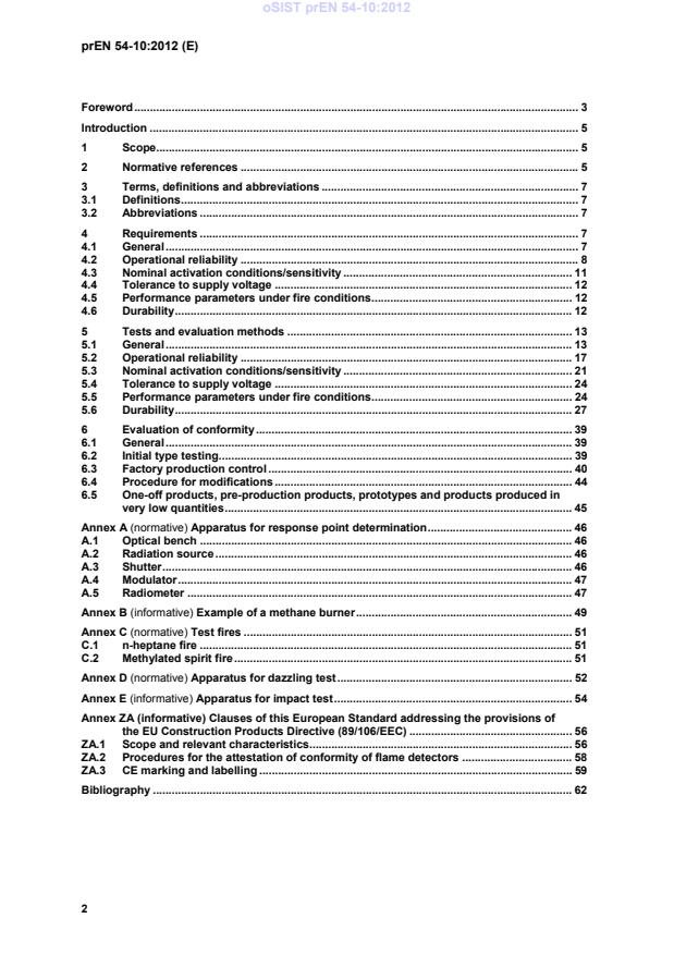 prEN 54-10 rev is a draft published by the European Committee for Standardization (CEN). Its full title is "Fire detection and fire alarm systems - Part 10: Flame detectors - Point detectors". This standard covers: This European Standard specifies requirements, test methods and performance criteria for point-type, flame detectors that detect the radiation from the flames generated during the combustion of carbon based materials operate using radiation from a hydrocarbon flame for use in fire detection systems installed in and around buildings. Flame detectors having special characteristics suitable for the detection of specific fire risks are not covered by this standard e.g. flame detectors that are used solely to detect metal fires or hydrogen fires (although the standard may be used as guidance in assessing such products). The performance requirements for any additional functions are beyond the scope of this standard (e.g. additional features or enhanced functionality for which this standard does not define a test or assessment method).