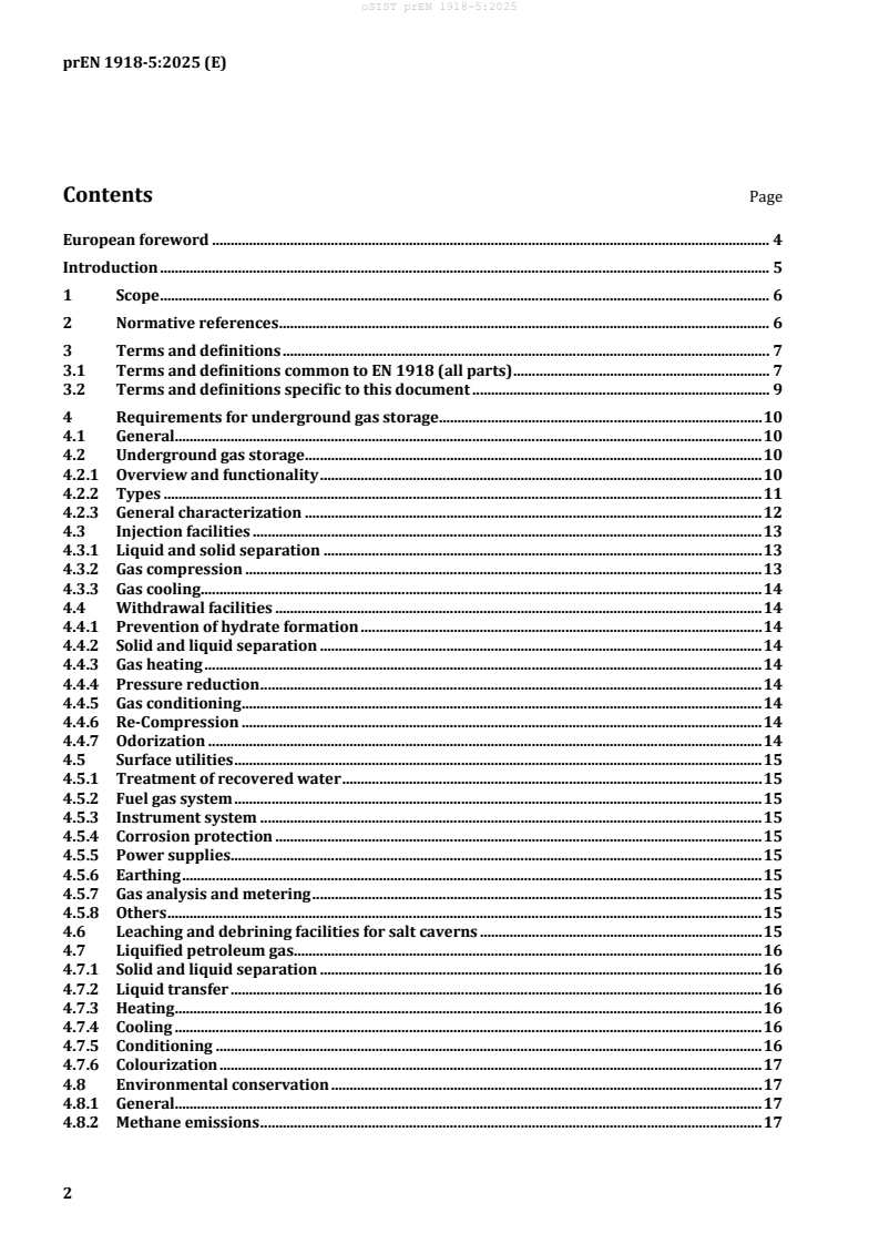 prEN 1918-5 (CEN) - "Gas infrastructure - Underground gas storage - Part 5: Functional recommendations for surface facilities" provides functional recommendations for the design, construction, testing, commissioning, operation, maintenance and abandonment of surface facilities for underground gas storage (UGS). It applies to the installations between the wellhead and the connection to the gas grid and specifies safe and environmentally acceptable practices. The draft prEN 1918-5:2025 is intended to supersede EN 1918-5:2016 and is part of the EN 1918 series (Parts 1–4 cover subsurface storage types).
