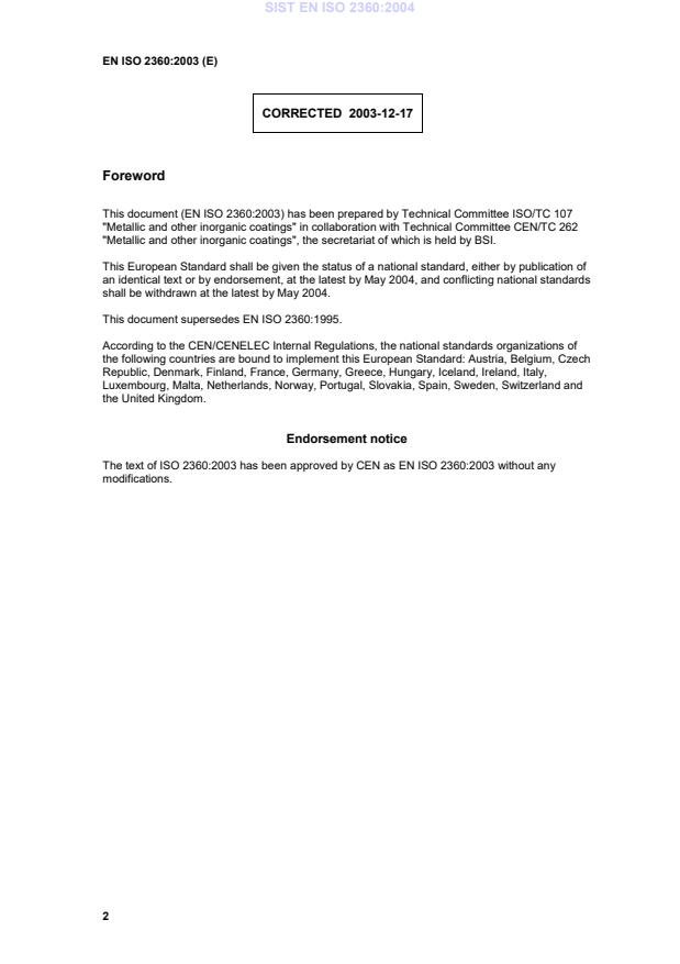 ISO 2360 was prepared by Technical Committee ISO/TC 107, Metallic and other inorganic coatings,