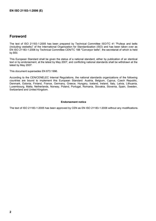 The text of ISO 21183-1:2005 has been prepared by Technical Committee ISO/TC 41 "Pulleys and belts