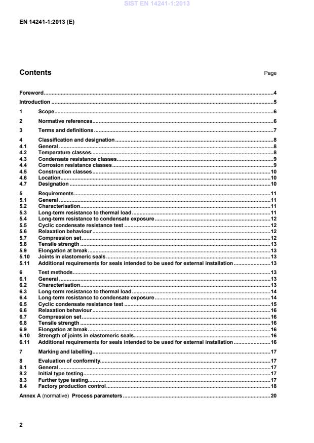 for internal installation of (components of) chimneys; — LE for both internal and external installation of (components of) chimneys. 4.7 Designation The designation of a seal shall consist of: — number of the corresponding standard; — temperature class (see 4.2); — condensate resistance; in this document only class W (see 4.3); — corrosion resistance; in this document only class 1 or 2 (see 4.4), SIST EN 14241-1:2013