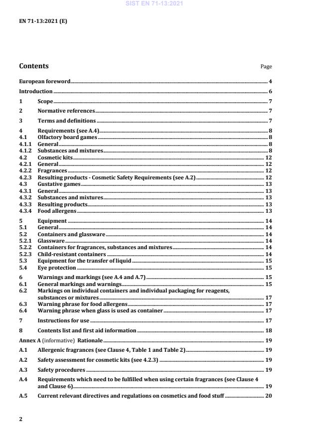 EN 71-13:2021 is a standard published by the European Committee for Standardization (CEN). Its full title is "Safety of toys - Part 13: Olfactory board games, cosmetic kits and gustative games". This standard covers: This document applies to olfactory board games, cosmetic kits, gustative games and supplementary sets. It specifies requirements on the use of substances and mixtures and in some cases on their amount and concentration in olfactory board games, cosmetic kits, gustative games and supplementary sets to such games or kits. These substances and mixtures are: - those classified as hazardous by the EC-legislation applying to hazardous substances [13] and hazardous mixtures [13]; - substances and mixtures which in excessive amounts could harm the health of the children using them and which are not classified as hazardous by the above-mentioned legislation; and - any other chemical substance(s) and mixture(s) delivered with the set. Furthermore, this document specifies allergenic fragrances which are prohibited in toys, marking requirements, in particular regarding allergenic fragrances, and requirements on a contents list, instructions for use, the equipment intended to be used during the activity and the use of highly flammable liquids. This document does not apply to cosmetic toys such as play cosmetics for dolls. NOTE The terms "substance" and "mixture" are defined in the REACH regulation (EC) No. 1907/2006 [14] and in the CLP regulation (EC) No. 1272/2008 [13].