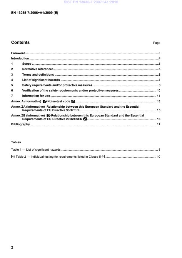 Tables Table 1 — List of significant hazards . 8!Table 2 — Individual testing for requirements listed in Clause 5" . 10 SIST EN 13035-7:2007+A1:2010