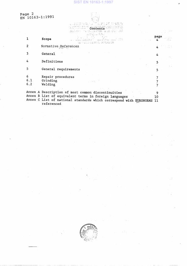 EN 10163-1:1991 is a standard published by the European Committee for Standardization (CEN). Its full title is "Delivery requirements for surface condition of hot rolled steel plates, wide flats and sections - Part 1: General requirements". This standard covers: 1.1 This European Standard specifies the general requirements for the surface condition of the hot-rolled steel plates, wide flats and sections. It covers the requirements on the type, the permissible depth and the permissible size of the surface area affected by: - discontinuities (impefections and defects) and - repairs by grinding and/or welding. 1.2 This European Standard shall be applied so far as no other requirements for the surface condition exist in the appropriate material or product standard. The requirements laid down in the appropriate material or product standard shall always prevail. 1.3 This part 1 covers the general delivery requirements for the surface quality of host rolled steel products such as: - Plates and wide flats, see part 2; - Sections, see part 3.