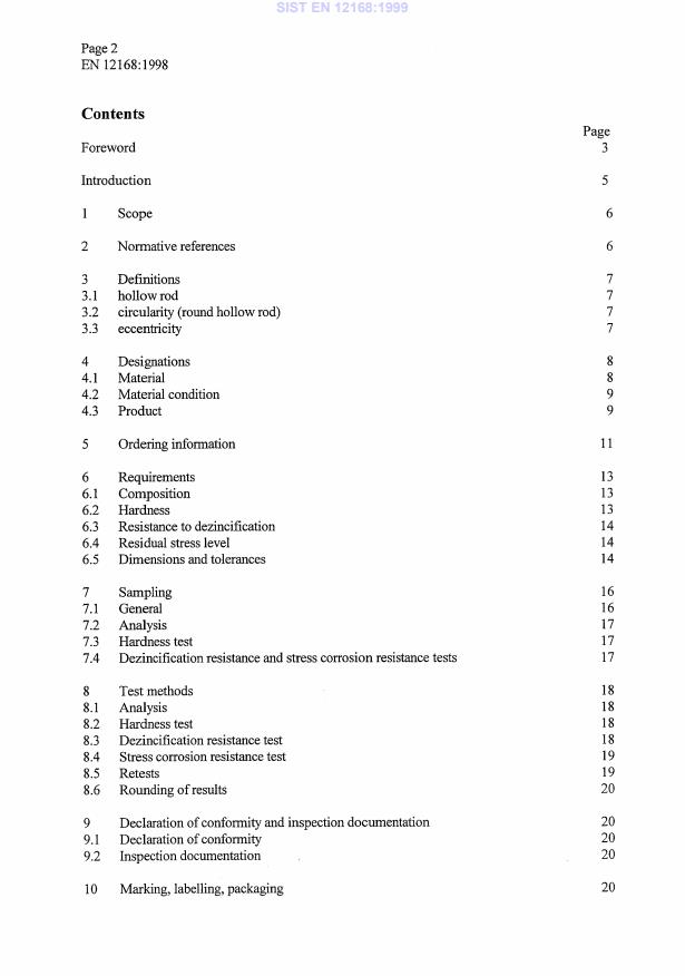 EN 12168:1998 is a standard published by the European Committee for Standardization (CEN). Its full title is "Copper and copper alloys - Hollow rod for free machining purposes". This standard covers: This European Standard specifies the composition, property requirements and dimensional tolerances for copper alloy hollow rod supplied in straight lengths, specifically intended for free machining purposes. Note: Hollow products having an outside diameter greater than 80 mm, and/or a wall thickness less than 2 mm, are specified in prEN 12449. The sampling procedures, the methods of test for verification of conformity to the requirements of this standard, and the delivery conditions are also specified.