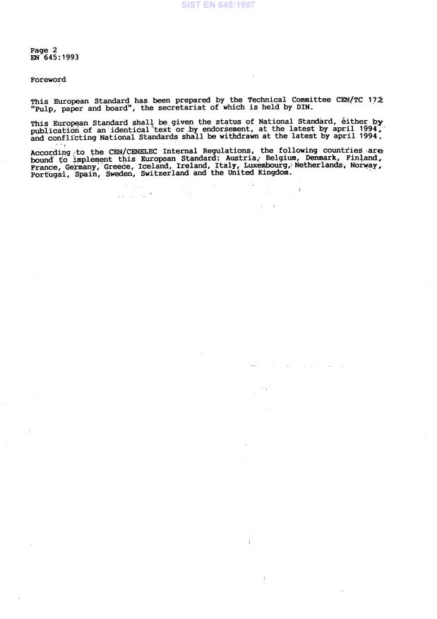 - Standard reference: EN 645:1993 (CEN), national adoption SIST EN 645:1997.