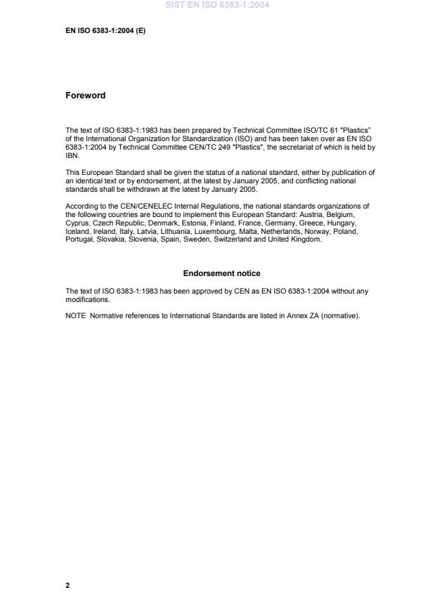 6383-1:2004 by Technical Committee CEN/TC 249 "Plastics", the secretariat of which is held by