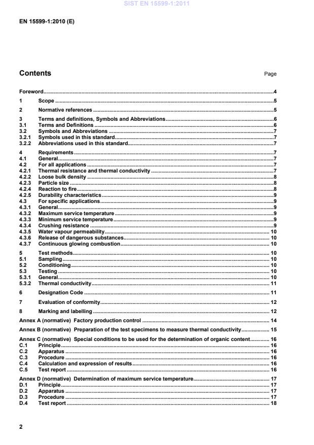 Clauses of this European Standard addressing the provisions of the EU Construction Products Directive . 19ZA.1Scope and relevant characteristics . 19ZA.2Procedures for attestation of conformity of loose-fill expanded perlite products . 20ZA.2.1Systems of attestation of conformity . 20ZA.2.2EC declaration of conformity . 21ZA.3CE Marking and labelling . 22Bibliography . 25 SIST EN 15599-1:2011