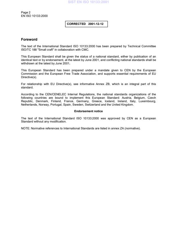 EN ISO 10133:2000 is classified under the following ICS (International Classification for Standards) categories: 47.080 - Small craft. The ICS classification helps identify the subject area and facilitates finding related standards.
