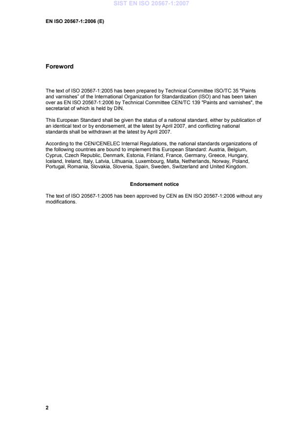 over as EN ISO 20567-1:2006 by Technical Committee CEN/TC 139 "Paints and varnishes", the