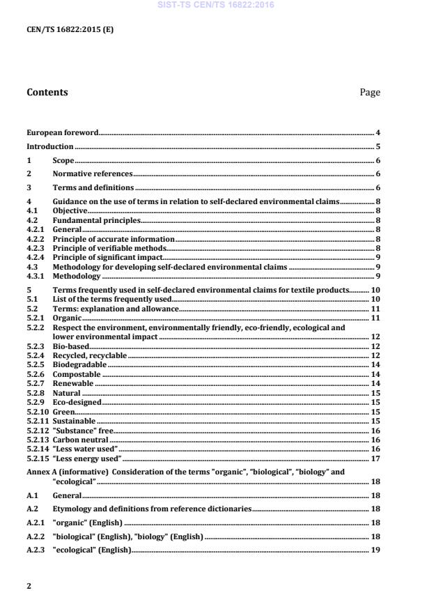 CEN/TS 16822:2015 provides guidance for developing and using self-declared environmental claims for textiles - including fibres, yarns, fabrics, finished textile products (e.g., clothing) and textile components (e.g., upholstery). The Technical Specification sets out principles, a methodology and rules for commonly used environmental terms (for example organic, recycled, biodegradable, bio-based, carbon neutral). It is intended to improve accuracy, transparency and consistency of on-product and marketing claims, and to reduce misleading statements (greenwashing). This document does not replace applicable legal labelling or environmental requirements.