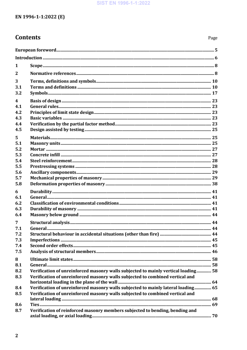 Keywords: EN 1996-1-1:2022, Eurocode 6, masonry structures, reinforced masonry, unreinforced masonry, design, limit state design, detailing, durability.