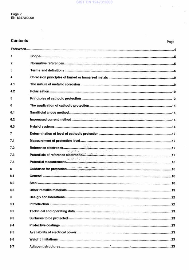 EN 12473:2000 is a standard published by the European Committee for Standardization (CEN). Its full title is "General principles of cathodic protection in sea water". This standard covers: This European Standard covers the general principles of cathodic protection including the criteria for protection, environmental and design consideration and secondary effects of cathodic protection and is intended as an introduction to other European standards in the general series "Cathodic Protection of Steel Structures in Sea Water". This European Standard provides a link between the theoretical aspects and the practical applications of cathodic protection as contained in the European Standards, as for example prEN 12474:1997, "Cathodic protection for submarine pipelines".