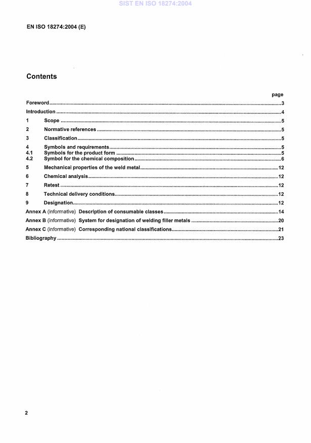 ISO 18274:2004 specifies requirements for classification of solid wires, strips and rods for fusion welding of nickel and nickel alloys. The classification of the solid wires, strips and rods is based on their chemical composition.