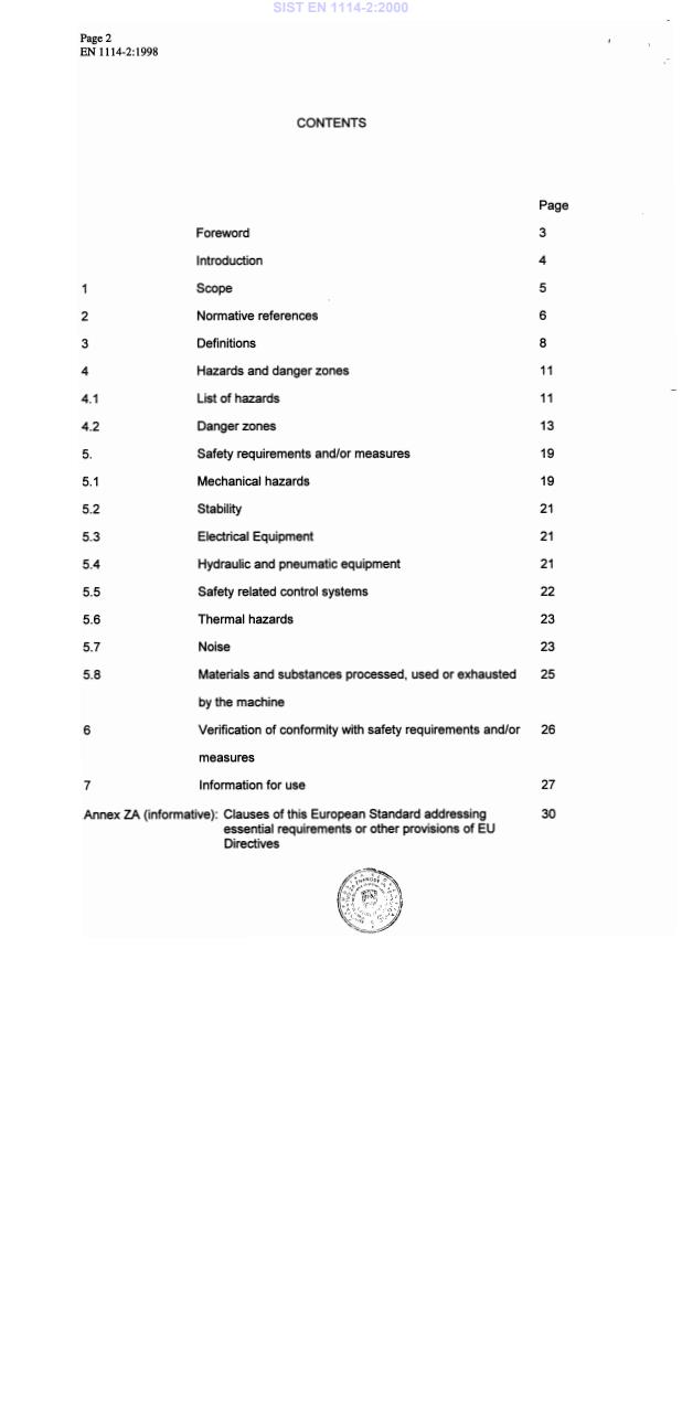 EN 1114-2:1998 is associated with the following European legislation: EU Directives/Regulations: 98/37/EC; Standardization Mandates: M/BC/CEN/88/13. When a standard is cited in the Official Journal of the European Union, products manufactured in conformity with it benefit from a presumption of conformity with the essential requirements of the corresponding EU directive or regulation.
