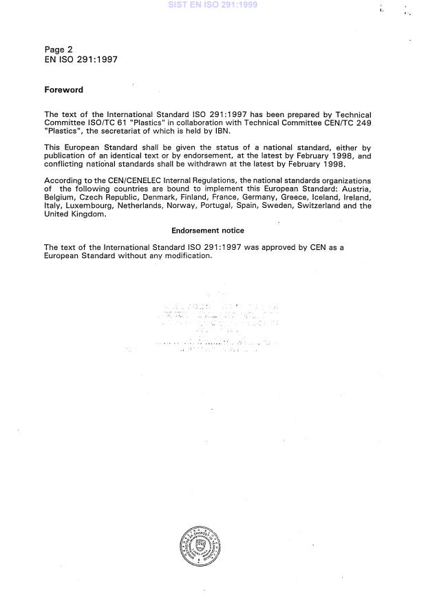 EN ISO 291:2005 - Plastics - Standard atmospheres for conditioning and testing (ISO 291:2005) - Effective Date