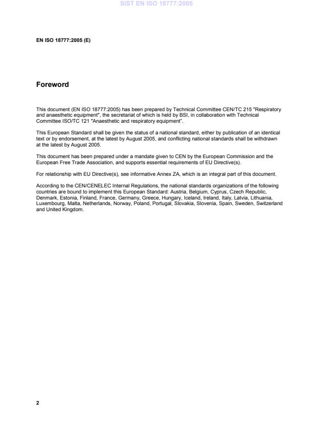 This document (EN ISO 18777:2005) has been prepared by Technical Committee CEN/TC 215 "Respiratory