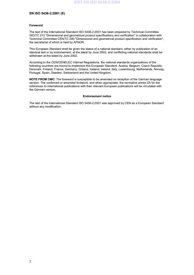 The text of the International Standard ISO 5436-2:2001 was approved by CEN as a European Standard