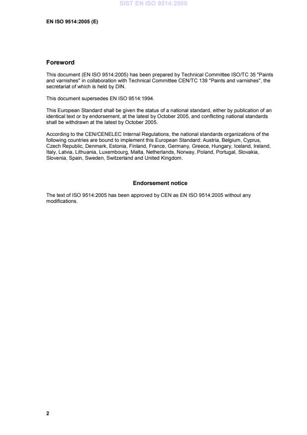 This document (EN ISO 9514:2005) has been prepared by Technical Committee ISO/TC 35 "Paints