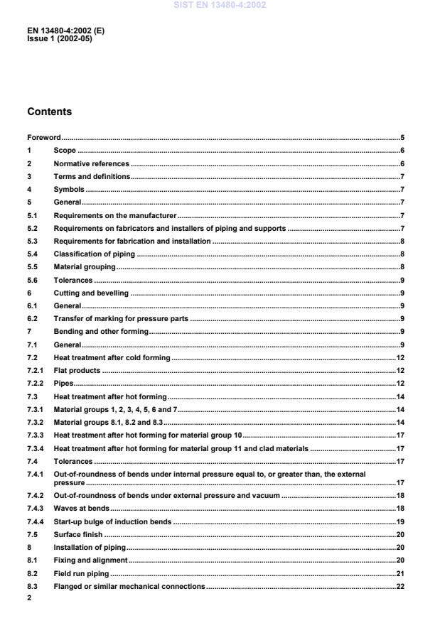 EN 13480-4:2002 is a standard published by the European Committee for Standardization (CEN). Its full title is "Metallic industrial piping - Part 4: Fabrication and installation". This standard covers: This Part of this European standard EN 13480 describes the requirements for fabrication and installation of piping systems, including supports, designed in accordance with EN 13480-3.